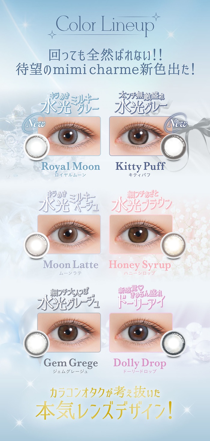 あの大人気カラー「ムーンラテ」の色違い!儚いミルキーグレーの水光レンズ!