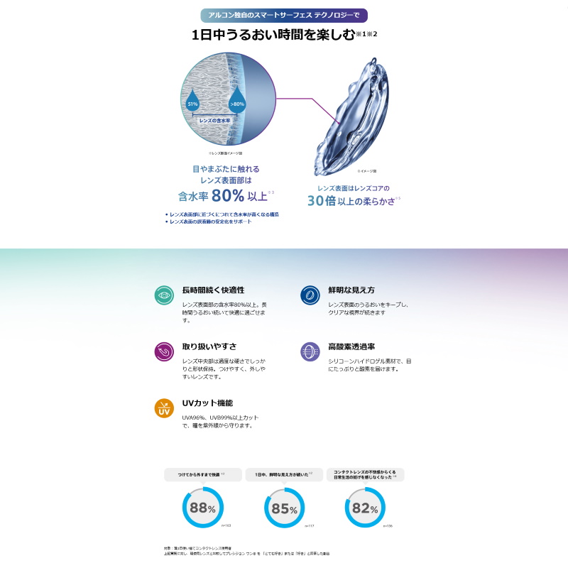 ・装用者の90%が「まるでコンタクトをしていないみたい※」と回答した生感覚レンズ「デイリーズ トータル ワン」の技術を活用
