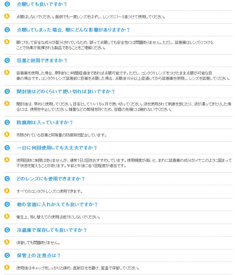 【用法容量】本剤の1〜3滴で、コンタクトレンズの両面をぬらして装着すること。