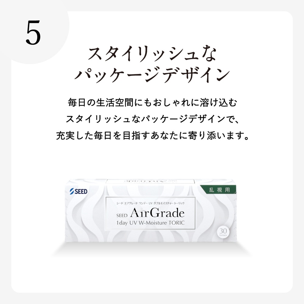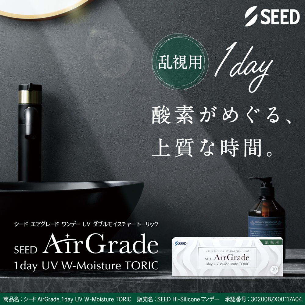 「シード AirGrade 1day UV W-Moisture TORIC」は、シードの高酸素透過性シリコーンハイドロゲル素材を採用した、