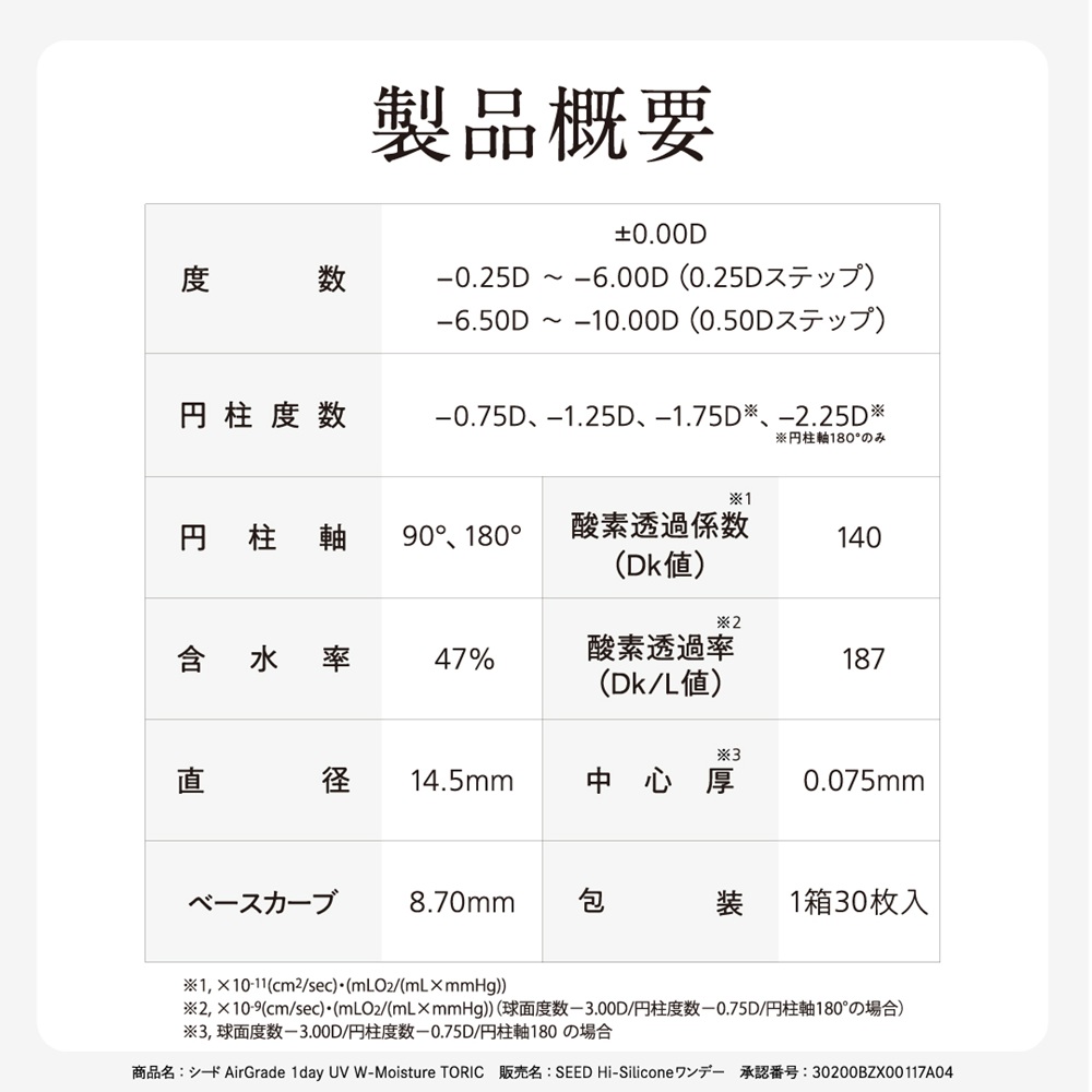 シード エアグレード ワンデー UV ダブルモイスチャー トーリック(乱視用) 30枚入 1箱 <SEED AirGrade 1day UV W-Moisture TORIC/Astigmatism/両目15日分> [宅配便送料無料]