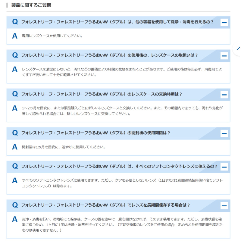 ※「フォレストリーフうるおいW(ダブル)」のご使用に際しては、使用説明書及びソフトコンタクトレンズ取扱説明書を必ずお読みください。