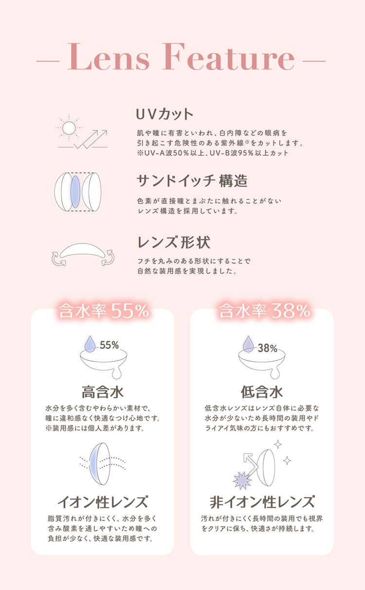 レンズ装用前に眼に違和感がないか、レンズ装用後も異物感等が無いかを確認し、異常を感じたら使用を停止し、