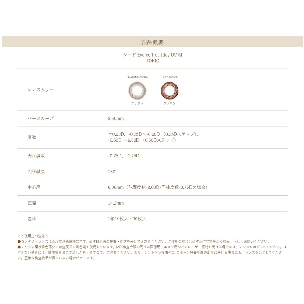 | 商品名 | シード Eye coffret 1day UV M TORIC |