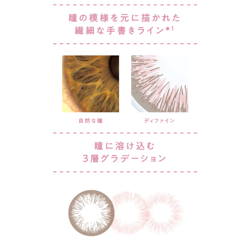 3層の透明な色彩レイヤーにより、元の瞳の色となじむことで、