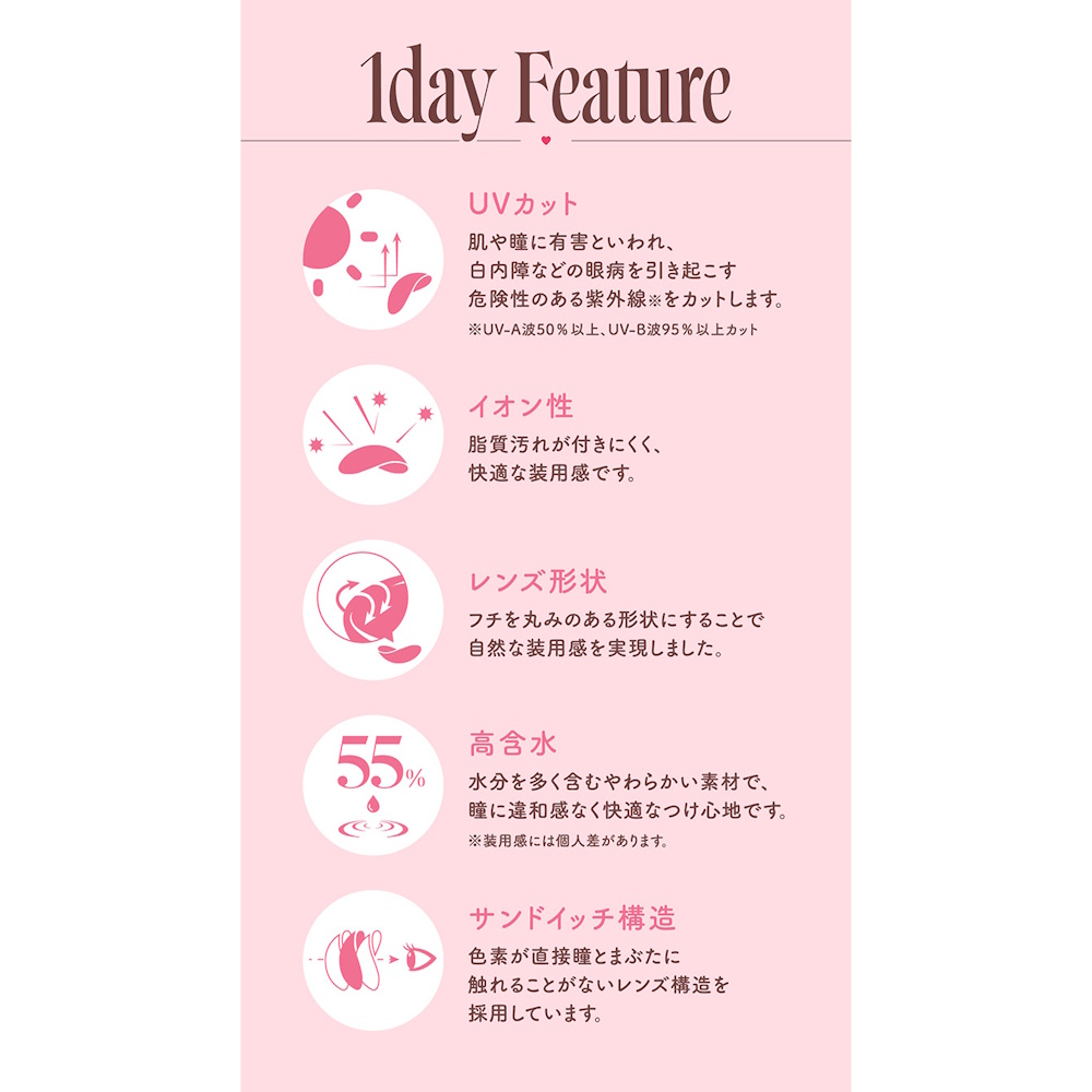 DIA(着色直径): 14.5mm(13.8mm):トゥインクルブラウン 14.5mm(13.8mm):ピンクボム 14.5mm(13.8mm):ドリームグレー 14.5mm(13.8mm):ユニフォームブラック 14.2mm(13.6mm):ブラウンバニー 14.2mm(13.2mm):ドーリッシュブラウン 14.2mm(13.2mm):ドーリッシュグレー 14.2mm(13.4mm):バブルブルー 14.2mm(13.6mm):ダークピオニー 14.2mm(13.5mm):サクラスモア 14.2mm(13.5mm):メルティーミスト 14.2mm(13.3mm):サクラペタル 14.2mm(13.3mm):ティントブラウン 14.2mm(12.8mm):ダズルベージュ 14.2mm(12.8mm):ダズルグレー 14.2mm(11.9mm):コーラルブラウン 14.2mm(13.0mm):ミラーグレー |