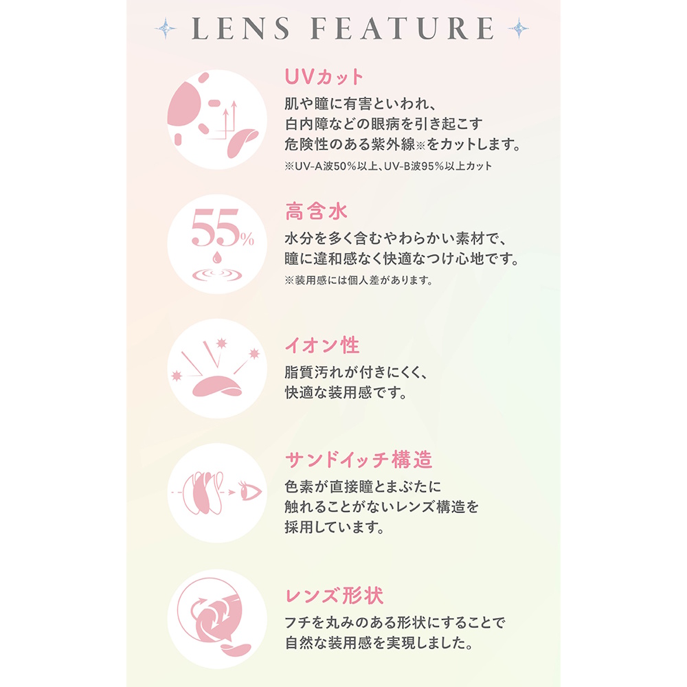 ニュアンスブラウンカラーが瞳を自然にトーンアップしてくれる裸眼アップデート系レンズ。