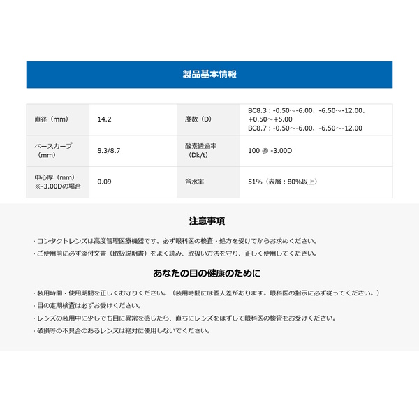 ●高酸素透過率シリコーンハイドロゲル素材で、目にたっぷりと酸素を通します。